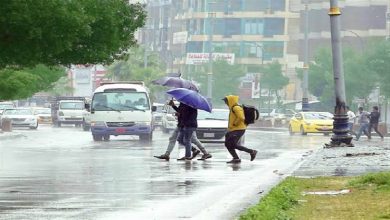 - الأنواء الجوية: أمطار رعدية وانخفاض في درجات الحرارة وتصاعد للغبار