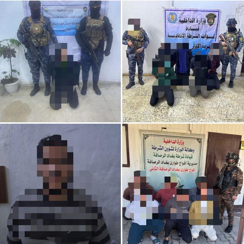 تواصل تشكيلات قطعاتنا الامنية في وزارتي الدفاع والداخلية واجباتها للبحث والتفتيش المناطقي بهدف تعزيز الامن والاستقرار وملاحقة عصابات الجريمة المنظمة والجنائية ومتابعة وتدقيق العمالة الاجنبية بإسناد الأجهزة والوكالات الاستخبارية، نتج عنها: القاء القبض على عدد من المطلوبين قضائياً ، بينهم عصابة “تتاجر بالاعضاء البشرية” مكونة من (ستة نساء ورجل واحد) ومتهمين اخرين (بالتزوير “هارب” – الابتزاز الكتروني)، بالاضافة الى اعتقال اجانب مخالفين لشروط وضوابط دائرة الاقامة والجنسية وذلك ضمن مناطق (حي الجهاد، بسماية، الرسالة الاولى_البياع، البتاويين، العلاوي، قرية النور_الراشدية) بجانبي الكرخ والرصافة.