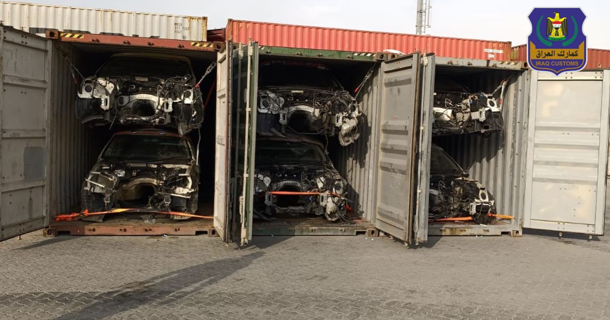 🔹مركز كمرك ام قصر الأوسط يضبط ( ٣ ) حاويات حجم ٤٠ قدم محملة ( ١٥ ) عجلة نوع ( تويوتا كراون ) دون الموديل المسموح باستيراده .