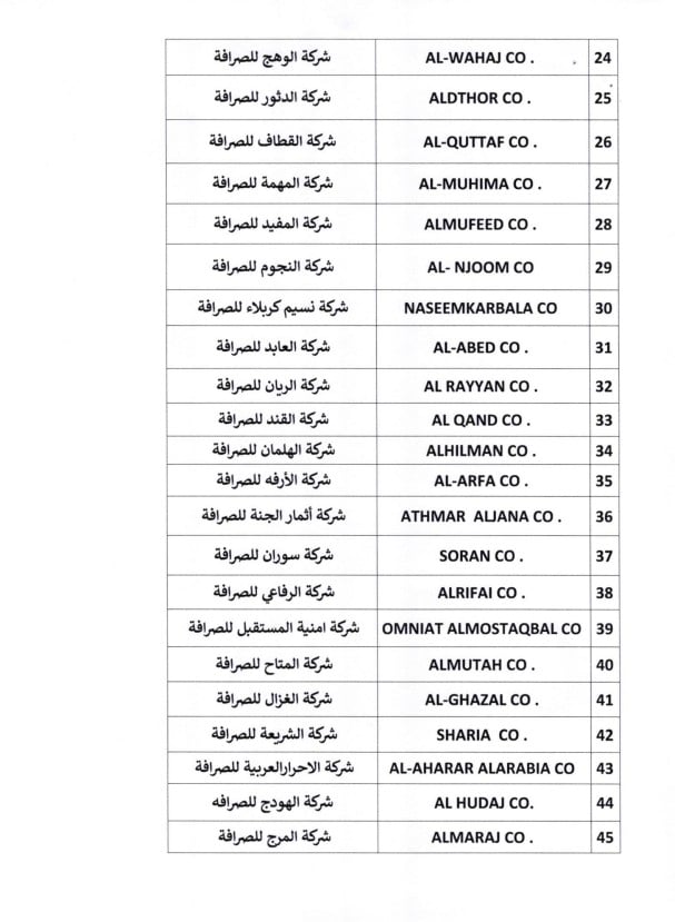 وأدناه قائمة البنوك والشركات المعتمدة في بغداد وباقي المحافظات لبيع الدولار الى الحجاج.