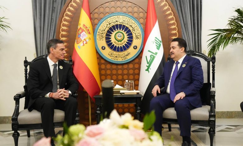 رئيس مجلس الوزراء السيد محمد شياع السوداني يعقد لقاءً ثنائياً مع رئيس الحكومة الإسبانية السيد بيدور سانشيز، بعد حضوره أعمال القمة العربية الـ34، المنعقدة في بغداد اليوم.