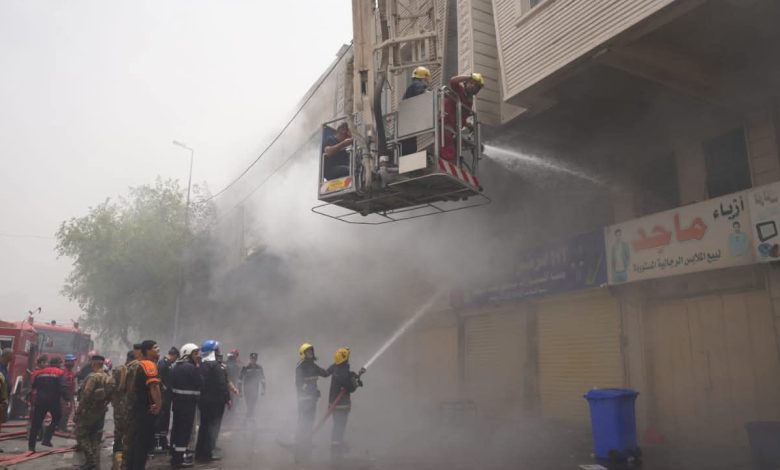 اخمدت فرق الإطفاء في مديرية الدفاع المدني حادث حريق اندلع داخل محلات تجارية مخصصة لتجارة الزيوت في بناية متعددة الطوابق بمنطقة ساحة الخلاني وسط بغداد .