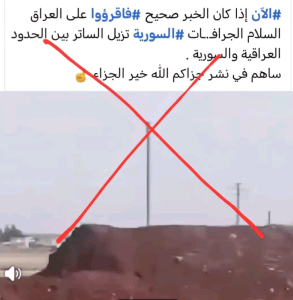 نفت قيادة قوات الحدود العراقية، اليوم السبت، صحة مقطع فيديو تداولته صفحات على مواقع التواصل الاجتماعي، يُظهر جرافات قيل إنها تقوم بإزالة سواتر ترابية على الحدود مع سوريا.