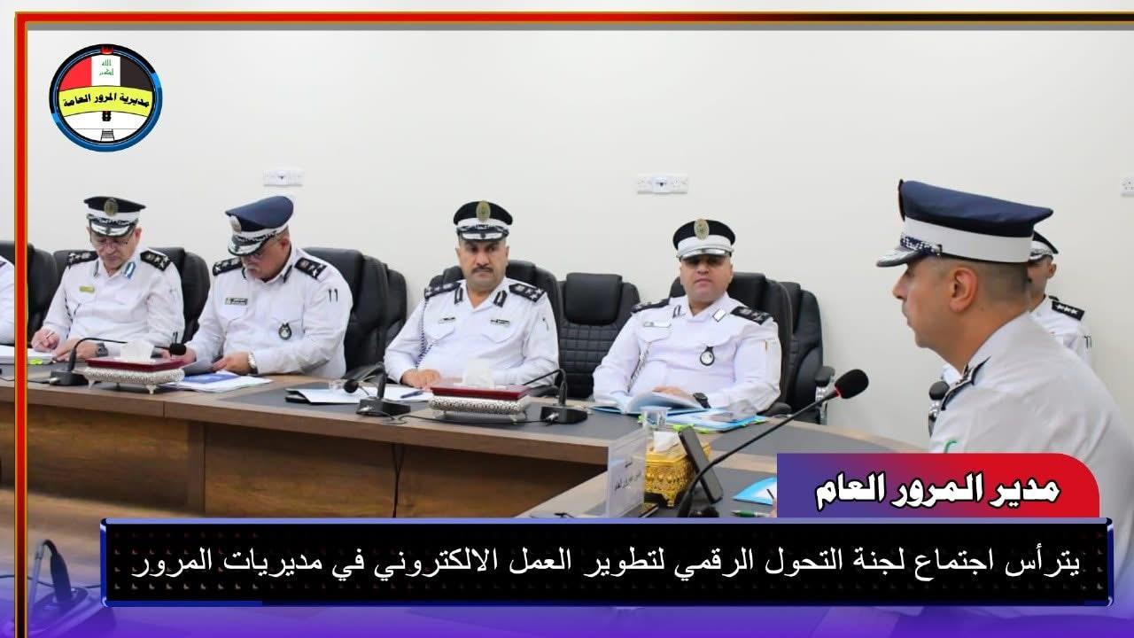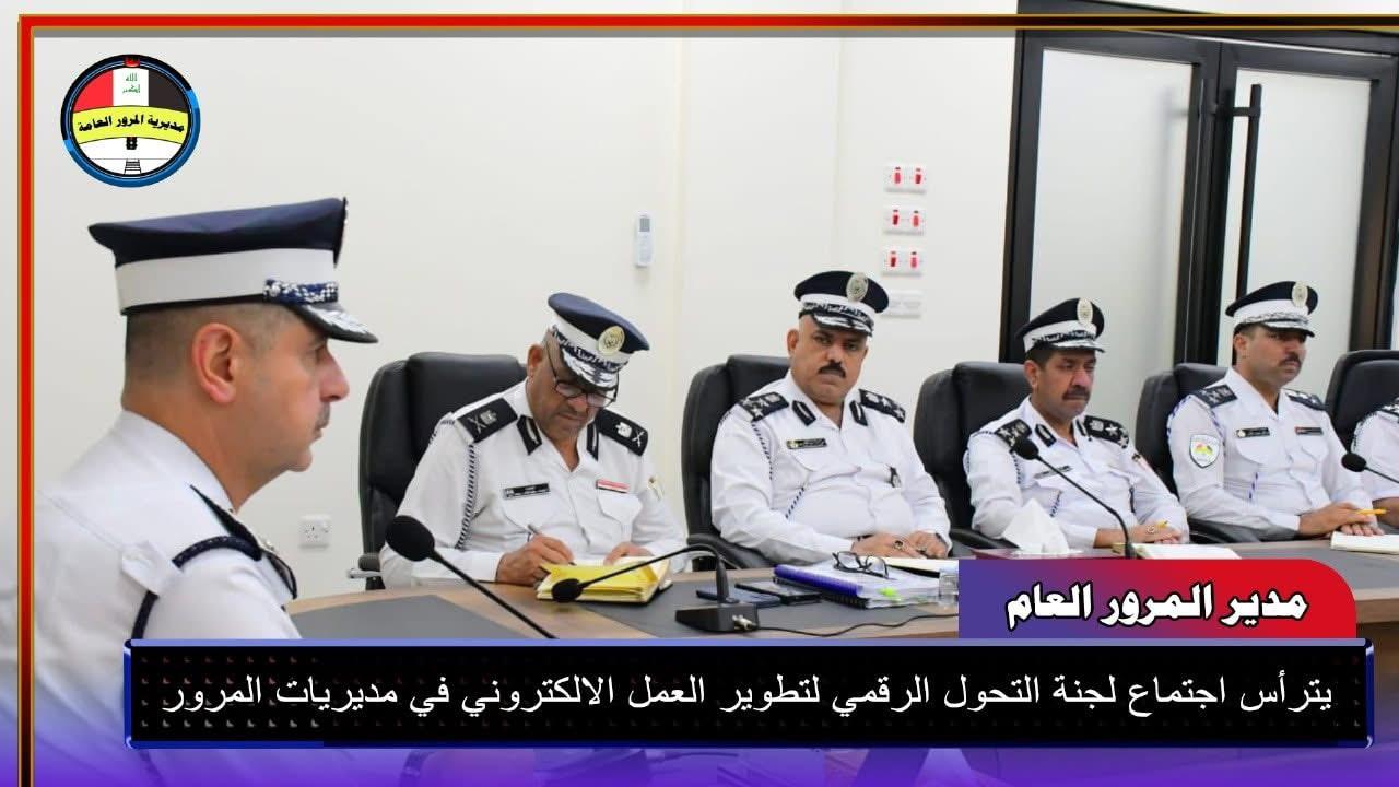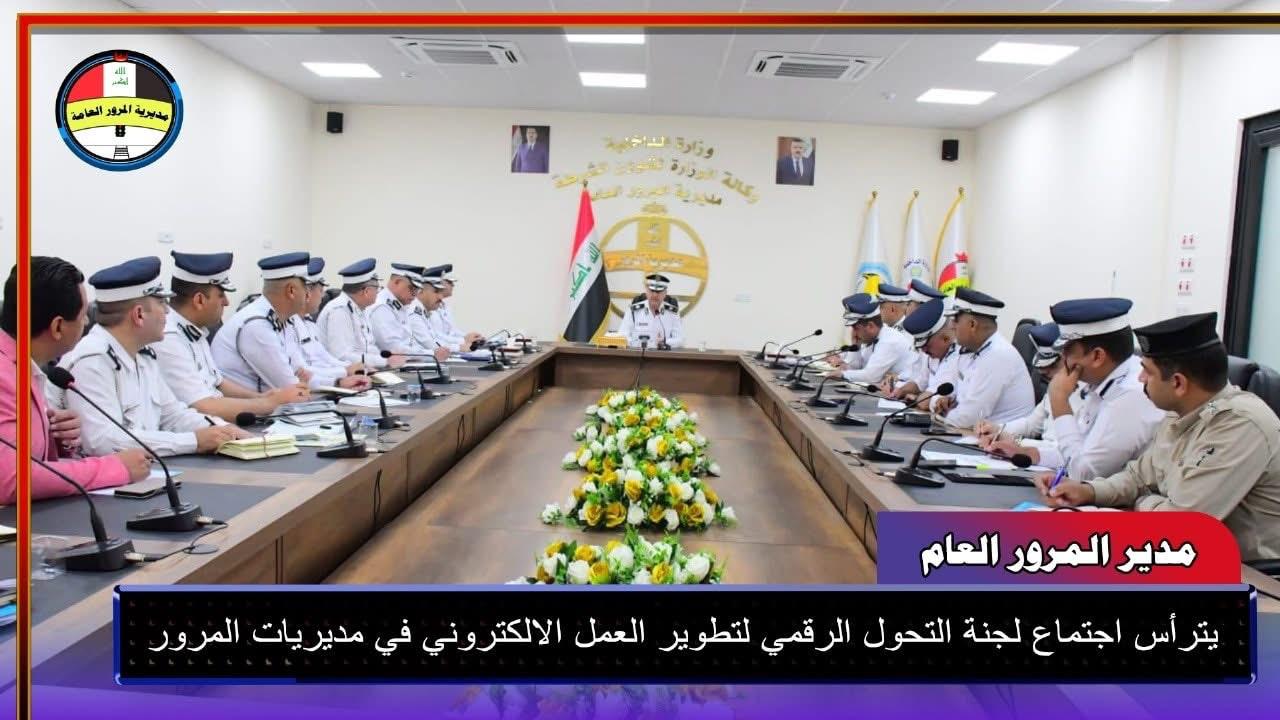 ترأس مدير المرور العام اللواء الدكتور عدي سمير اجتماعاً موسعاً بحضور معاوني مدير المرور ومدراء المديريات والأقسام والشعب، للنهوض بواقع العمل الإلكتروني والاتصالات في جميع مديريات المرور في بغداد والمحافظات من خلال اللجنة الفنية ومن ذوي الاختصاص لتفعيل (التحول الرقمي) الذي سيسهم بشكل كبير في تقليل الروتين عند مراجعة المواطنين والاستعلام عن الغرامات، وكذلك إنجاز معاملاتهم إلكترونياً في دوائر المرور مع التأكيد على حث جميع المواطنين على العمل بتطبيق عين العراق للاستعلام عن الخدمات المقدمة لهم من خلال هذا التطبيق الالكتروني المهم خدمة للصالح العام.