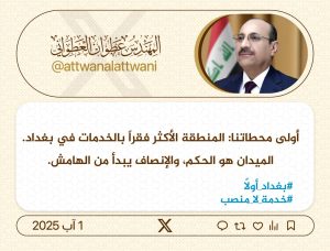 أعلن محافظ بغداد عطوان العطواني عن بدء جولاته الميدانية في أفقر مناطق بغداد، مؤكداً أن “الإنصاف يبدأ من الهامش”.