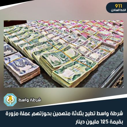 شرطة واسط تطيح بثلاثة متهمين بحوزتهم عملة مزوّرة بقيمة 125 مليون دينار