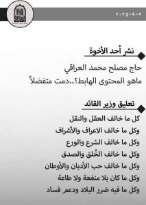 الرئيسية/الأخبار المحلية/وزير السيد مقتدى الصدر يحدد مفهوم المحتوى الهابط بـ7 نقاط الأخبار المحلية وزير السيد مقتدى الصدر يحدد مفهوم المحتوى الهابط بـ7 نقاط Publishing Directorسبتمبر 2, 2025 أقل من دقيقة شارك هذا الموضوع: شارك على فيس بوك (فتح في نافذة جديدة) فيس بوك المشاركة على X (فتح في نافذة جديدة) X Publishing Directorسبتمبر 2, 2025 أقل من دقيقة فيسبوك X سكايب ماسنجر ماسنجر واتساب تيلقرام ڤايبر مشاركة عبر البريد