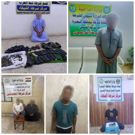 قيادة شرطة البصرة تضبط أسلحة وتلقي القبض على متهمين بقضايا مختلفة