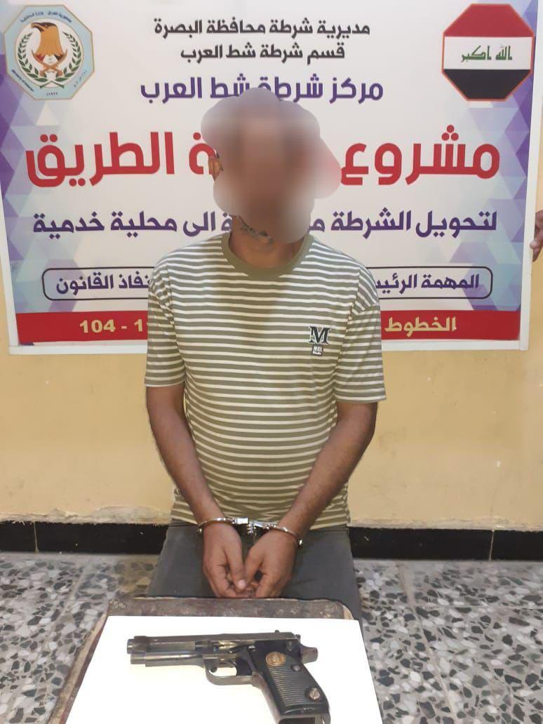 ألقت مفارز قيادة شرطة محافظة البصرة، اليوم الإثنين، القبض على متهم وضبطت بحوزته مسدس غير مرخص وبندقية كلاشنكوف وبندقيتي صيد في قضاء شط العرب، فيما تمكنت مفارز قسم شرطة الحسين من إلقاء القبض على متهم آخر بحوزته مادة مخدرة ومسدس غير مرخص. ونفذت قوة مشتركة أوامر قبض بحق عدد من المطلوبين وفق مواد مختلفة من قانون العقوبات. وفي السياق ذاته،