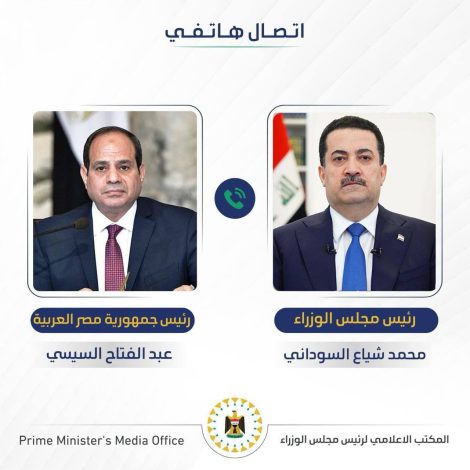 رئيس مجلس الوزراء السيد محمد شياع السوداني يجري مباحثات هاتفية مع الرئيس المصري