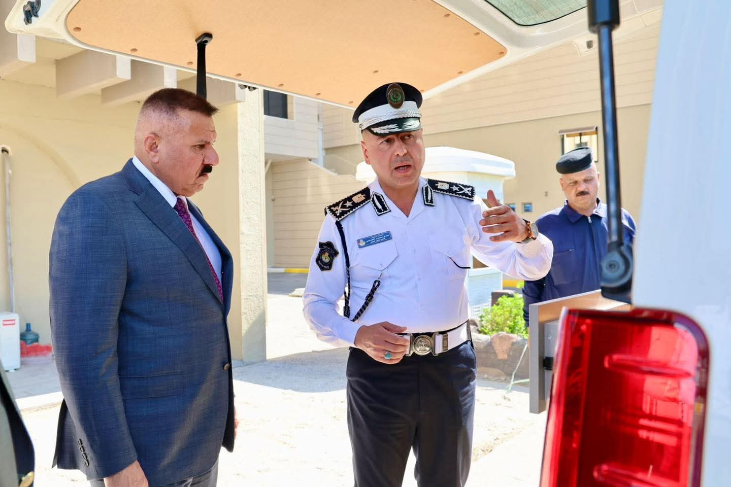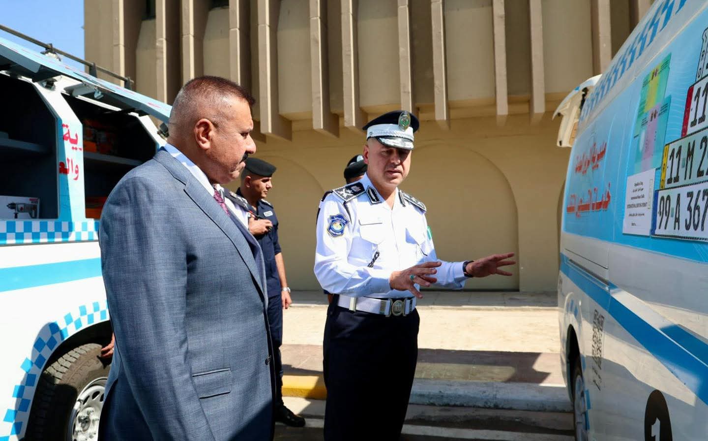وزير الداخلية يطلع على عمل المركبات التخصصية الجوالة لتسجيل المركبات والتحويل واصدار وتجديد اجازات السوق وتثبيت اللوحات في منازل المواطنين