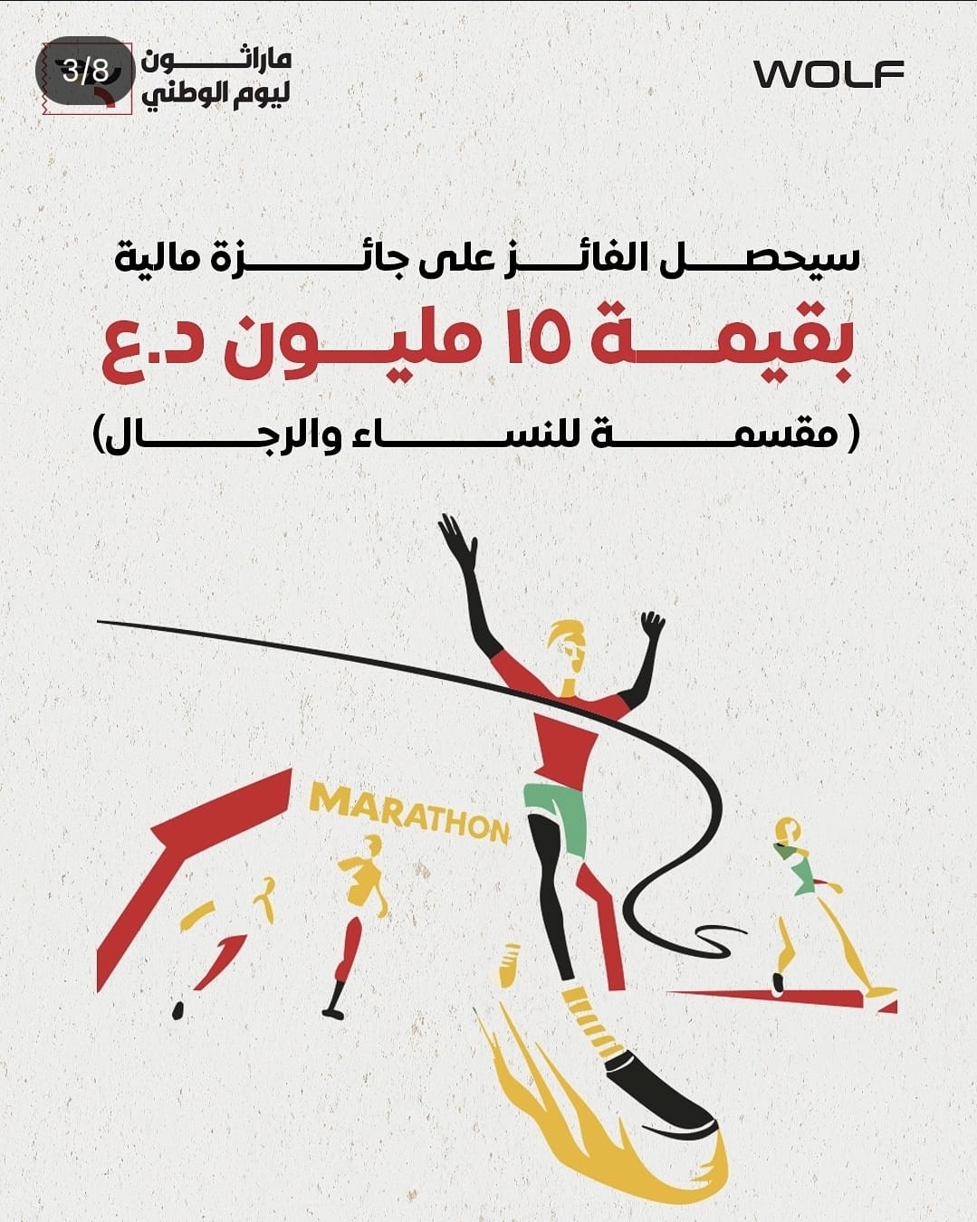 كشفت الجهة المنظمة أن الماراثون سيقدم جوائز مالية كبرى تبلغ قيمتها الإجمالية 15 مليون دينار عراقي، وسيتم تقسيمها على الفائزين من فئتي النساء والرجال.