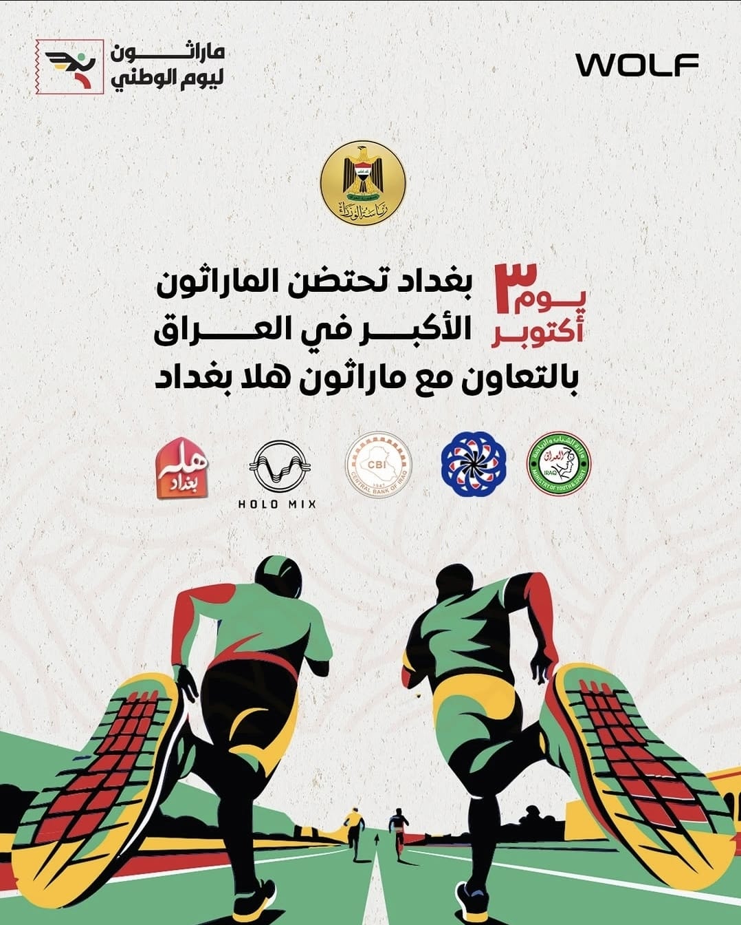 يُقام الماراثون، الذي وُصف بأنه أضخم حدث رياضي في البلاد، برعاية رئاسة الوزراء، ويشهد مشاركة سبع محافظات، مع إتاحة فرصة الانضمام مجاناً لجميع الراغبين. ويشارك في تنظيم الحدث عدد من الجهات والشركات، منها “هلا بغداد” و”HOLO MIX” والمصرف المركزي العراقي وجهات أخرى.