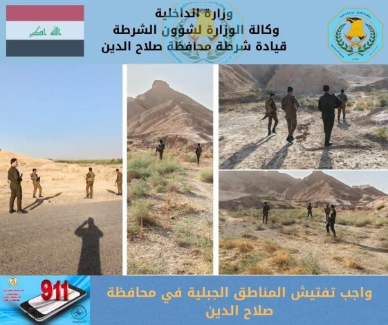 ارض اشور – تنفيذاً لتوجيهات السيد قائد شرطة محافظة صلاح الدين، تواصل مفارز أفواج الطوارئ في المحافظة تنفيذ واجباتها الأمنية اليومية بنسق عالٍ من المهنية والاحترافية، مُركزةً جهودها على عمليات تفتيش ميدانية شاملة ودقيقة للمناطق الجبلية ضمن قواطع المسؤولية.