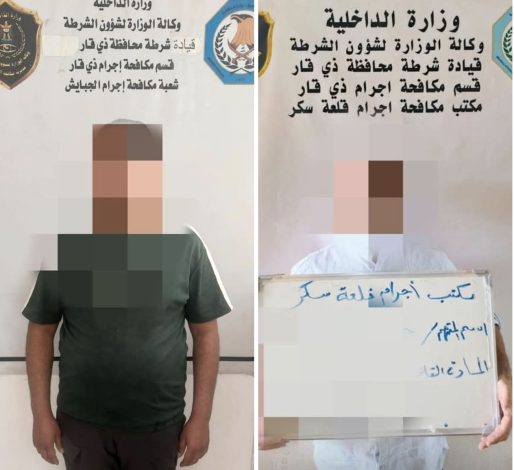 مكافحة إجرام ذي قار تلقي القبض على متهمين 2 مطلوببن بقضايا مختلفة