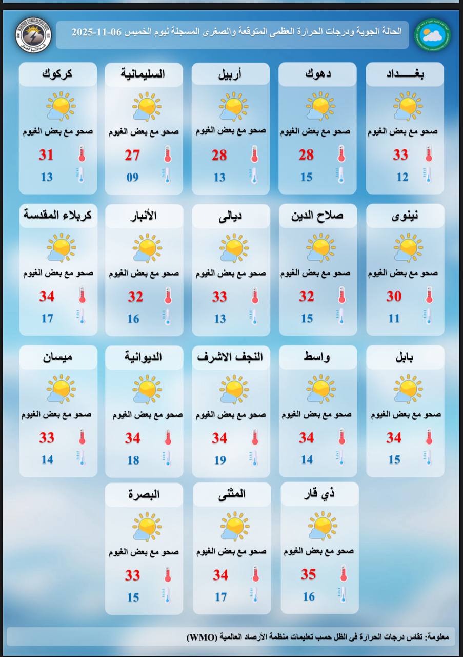 طقس العراق.. غبار وارتفاع جديد في درجات الحرارة