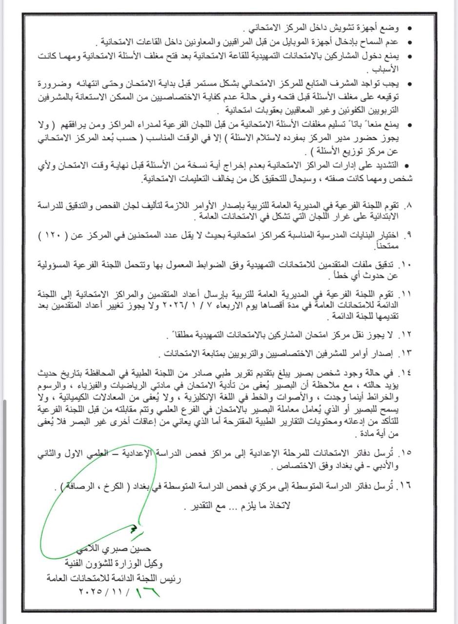 التربية تفتح باب التقديم امام الراغبين باداء الامتحانات الخارجية من عشرين تشرين الثاني ولغاية الخامس والعشرين من الشهر المقبل