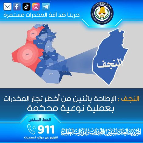 الإطاحة باثنين من أخطر تجار المخدرات في النجف الأشرف بعملية نوعية محكمة
