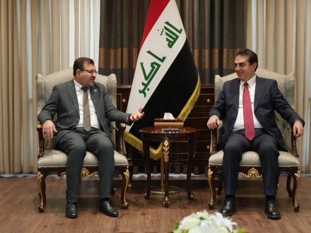 إستقبل نائب رئيس مجلس النواب الأستاذ فرهاد أمين الأتروشي، اليوم الأربعاء 2025/12/31 في مكتبه الرسمي ببغداد نائب رئيس كتلة النهج الوطني النائب د.سعد نعيم العوادي الذي قدم في بداية اللقاء التهاني والتبريكات للأتروشي بمناسبة إنتخابه نائباً لرئيس المجلس في جلسة يوم أمس متمنياً لسيادته النجاح والتوفيق في ممارسة مهامه في رئاسة المجلس.