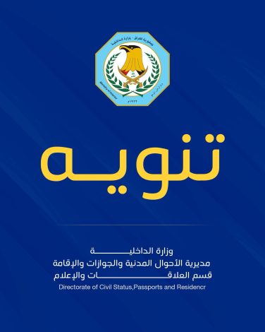 أعلنت مديرية الأحوال المدنية والجوازات والإقامة، اليوم الأربعاء، عن خطوة جديدة في مسار التحول الرقمي الشامل، شملت إطلاق خدمة الحجز الإلكتروني للبطاقة الوطنية في محافظة نينوى، وتعميم الحجز الإلكتروني لجوازات السفر عبر تطبيق “عين العراق” في عموم المحافظات، وذلك بدءاً من مطلع الأسبوع المقبل.