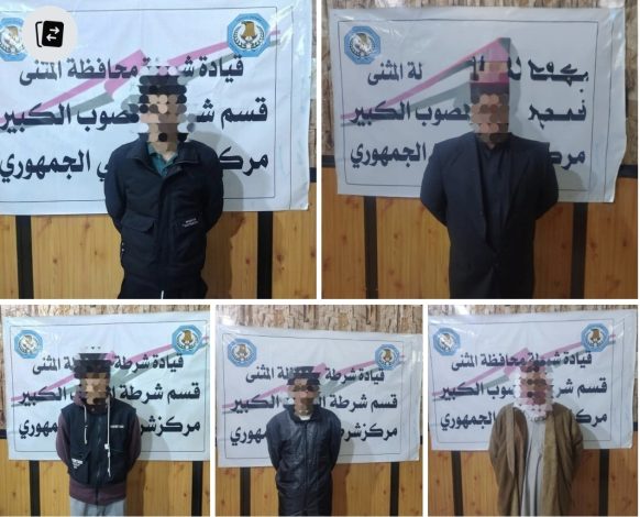 شرطة المثنى: القبض على 5 مطلوبين للقضاء في الصوب الكبير بالسماوة