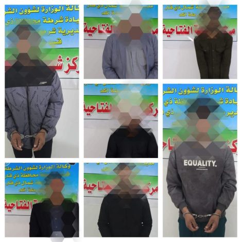أعلنت قيادة شرطة محافظة ذي قار، اليوم الجمعة، ، عن إلقاء القبض على سبعة متهمين شاركوا في مشاجرة “لم يحدد سببها”، مع ضبط سلاح ناري كان بحوزتهم، وذلك ضمن جهود فرض القانون وتعزيز السلم المجتمعي في المحافظة.