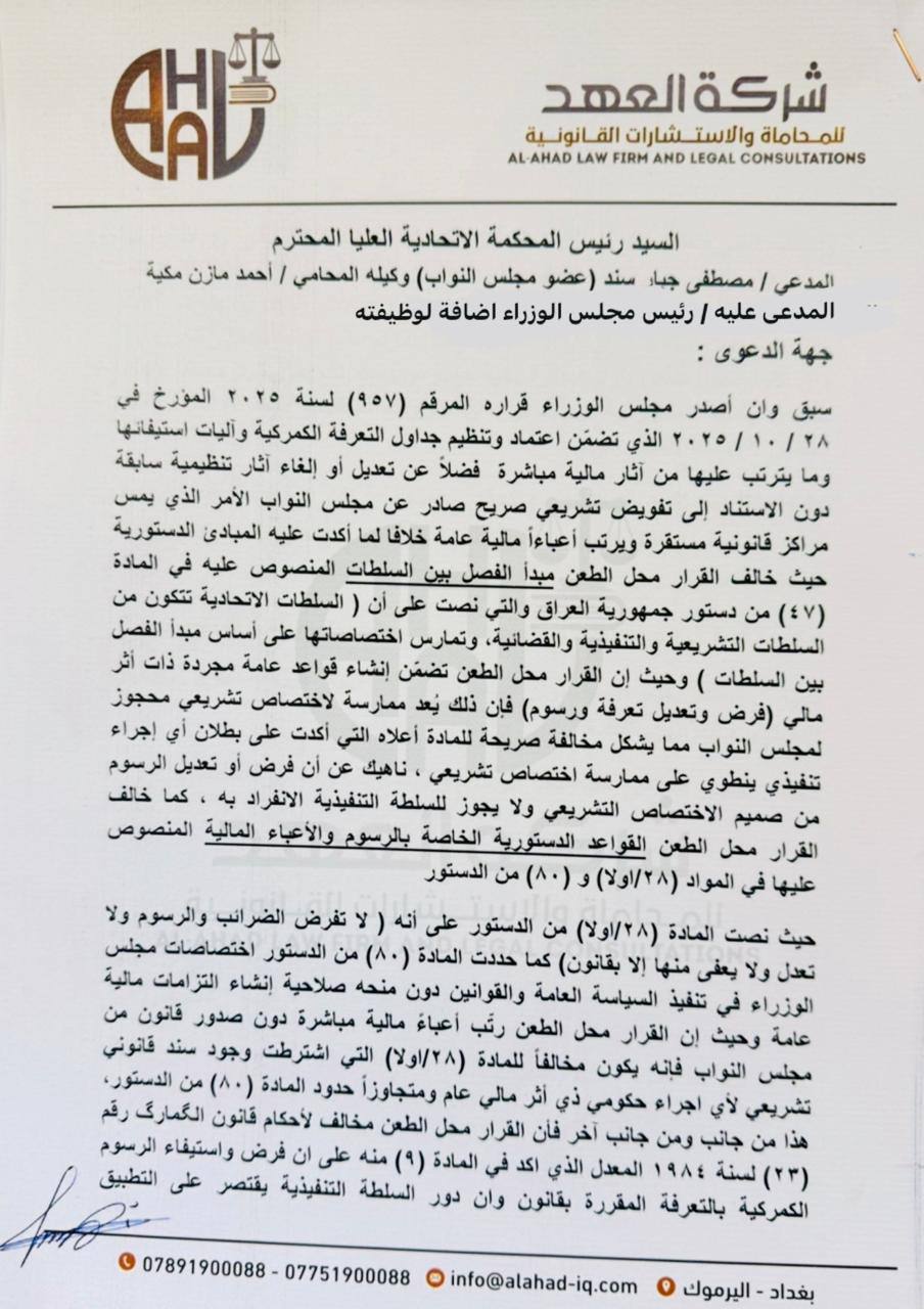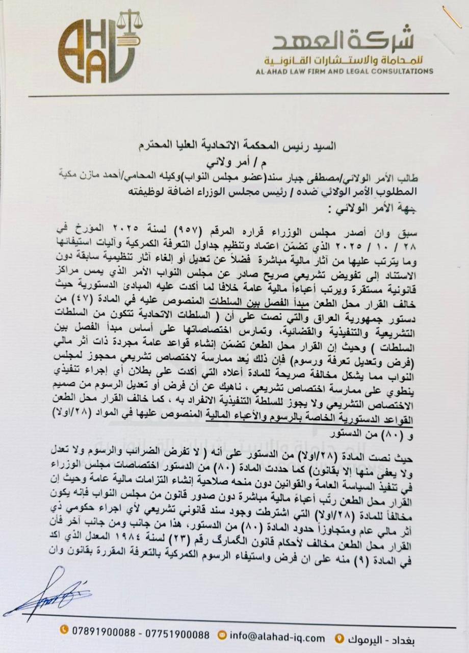 الرئيسية/الأخبار السياسية/النائب مصطفى سند: قدمت شكوى لدى المحكمة الاتحادية لطلب أمر ولائي وأيضاً فتح دعوى ضد الحكومة حول الرسوم الگمرگية الجديدة الأخبار السياسية النائب مصطفى سند: قدمت شكوى لدى المحكمة الاتحادية لطلب أمر ولائي وأيضاً فتح دعوى ضد الحكومة حول الرسوم الگمرگية الجديدة Publishing Directorيناير 8, 2026 أقل من دقيقة شارك هذا الموضوع: Share on Facebook (Opens in new window) Facebook Share on X (Opens in new window) X Publishing Directorيناير 8, 2026 أقل من دقيقة فيسبوك X سكايب ماسنجر ماسنجر واتساب تيلقرام ڤايبر مشاركة عبر البريد