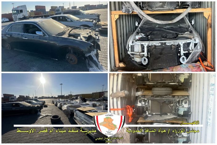 وذكر المتحدث الرسمي باسم هيئة المنافذ الحدودية السيد علاء الدين القيسي ،ان ‘مديرية منفذ ميناء ام قصر الاوسط، تمكنت من ضبط حاويتين تحتوي (14) عجلة دون الموديل المسموح بالاستيراد معدة للتهريب .