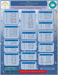 أصدرت الهيئة تقرير كمية الأمطار المسجلة خلال 12 ساعة الماضية من الساعه التاسعة صباحاً الى الساعة التاسعة مساءاً من يوم السبت المصادف 10/1/2026 والصادرة من قسم الرصد الجو.