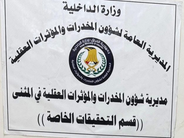 أعلنت مديرية شؤون المخدرات والمؤثرات العقلية في محافظة المثنى، اليوم، عن إلقاء القبض على أحد أخطر وأكبر تجار المخدرات المطلوبين للقضاء، وذلك في عملية أمنية وصفت بـ “النوعية” نُفذت في عمق بادية المثنى.