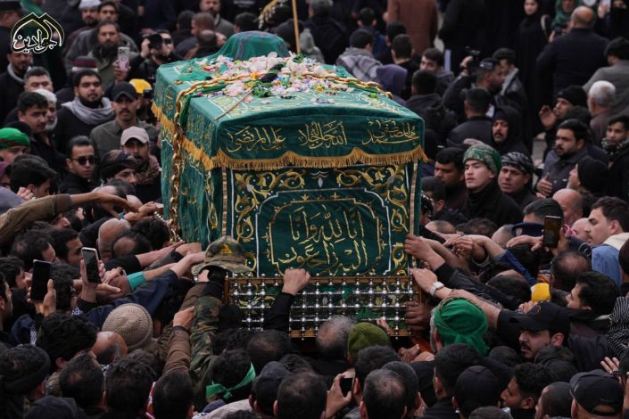 * الانطلاق: بدأ التشييع الرمزي المهيب من منطقة “جسد الأئمة” باتجاه الصحن الكاظمي الشريف.