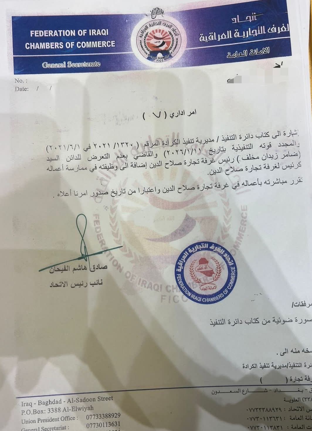 شرطة صلاح الدين تنفي اقتحام غرفة التجارة وتؤكد: المدير الجديد تسنم مهامه رسمياً