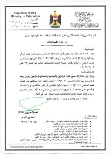 وذكر بيان لاعلام وزارة التربية، تلقته وكالة أرض آشور الإخبارية، تفاصيل قرار المحاولات الذي صدر مؤخراً، والذي يشمل جميع طلبة الدراستين الصباحية والمسائية الذين رسبوا بدرس واحد أو درسين في العام الدراسي ٢٠٢٤/٢٠٢٥.