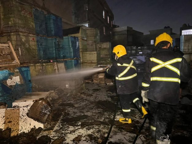 وذكر بيان لاعلام مديرية الدفاع المدني، انه’بناءً على توجيهات مباشرة من مدير عام الدفاع المدني، اللواء الحقوقي محسن كاظم علك، استنفرت الفرق إمكاناتها لمحاصرة النيران التي شبت في مبنى مكون من أربعة طوابق، يُستخدم لتجارة المطيبات والبهارات ويضم معملاً لإنتاج ورق الكرتون.