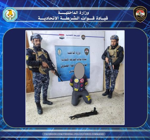 تمكنت مفارز الفرقة الخامسة شرطة اتحادية متمثلة بقوة من اللواء العشرون والقطعات الأمنية والاستخبارية العاملة ضمن قاطع المسؤولية، من إلقاء القبض على متهم اقدم على قتل حارس في مشروع حكومي شمال بغداد، مع ضبط سلاح الجريمة.
