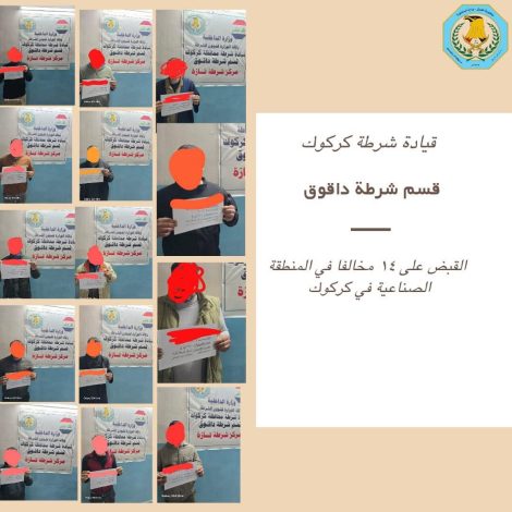 شرطة كركوك تُنفذ عملية استباقية وتطيح بـ (14) مخالفاً في المنطقة الصناعية