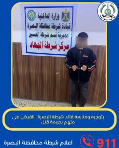 وذكر بيان لإعلام القيادة تلقته وكالة أرض آشور الإخبارية: “بمتابعة وإشراف ميداني من قبل السيد قائد شرطة محافظة البصرة، اللواء لطيف عبد الرضا السعد، تمكنت مفارز قسم شرطة الحسين، بالتعاون المشترك مع مفارز الفوج الثالث، من الإطاحة بمتهم مطلوب للقضاء”.