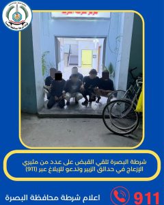 شرطة البصرة تلقي القبض على عدد من مثيري الإزعاج في حدائق الزبير وتدعو للإبلاغ عبر (911)