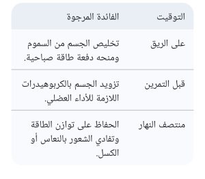 جدول: الاستخدام الأمثل للزبيب حسب التوقيت