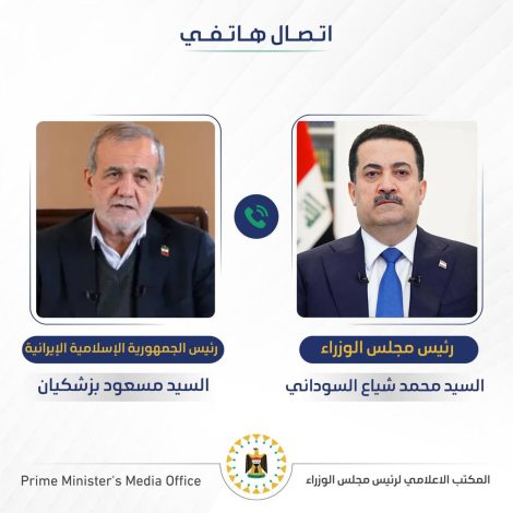 رئيس مجلس الوزراء السيد محمد شياع السوداني يجري اتصالاً هاتفياً مع الرئيس الإيراني