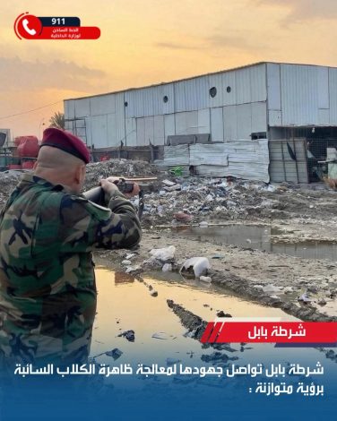 وذكر إعـلام قيـادة شرطـة محافـظة بابـل في بيان تلقته وكالة أرض آشور الإخبارية ( 14 آذار و2026)، انه”في إطار حرصها على حماية الصحة العامة والحفاظ على البيئة ، وبما ينسجم مع مبادئ الرفق بالحيوان والتوازن البيئي، تواصل قيادة شرطة محافظة بابل تنفيذ حملاتها لمعالجة ظاهرة الكلاب السائبة ، بالتنسيق مع دوائر البيطرة والبلديات والجهات المختصة .