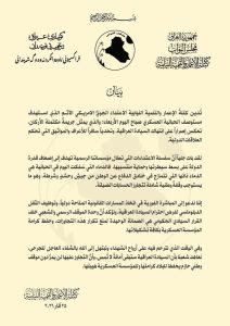 واختتمت الكتلة بيانها بالترحم على أرواح الشهداء والابتهال بالشفاء العاجل للجرحى، فيما جددت عهدها للشعب العراقي بأن تبقى السيادة أمانةً لا تُمس، مؤكدةً أن التجاوز عليها لن يمر دون موقف وطني حازم يحفظ للبلاد كرامتها وللمؤسسة العسكرية هيبتها.