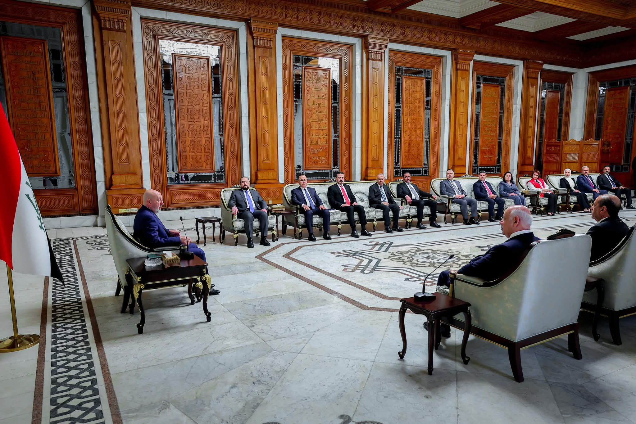 استقبل فخامة رئيس الجمهورية السيد نزار ئاميدي، اليوم الأحد 19 نيسان 2026، معالي وزير الثقافة والسياحة والآثار الأستاذ الدكتور أحمد فكاك البدراني، والسادة الوكلاء ورؤساء الهيئات والمديرين العامين، ومن بينهم مدير عام الدار العراقية للأزياء السيدة نجوان فارس عبدالله، لتقديم التهاني والتبريكات بمناسبة تسنمه منصب رئيس الجمهورية، متمنين لفخامته النجاح في مهامه الوطنية.
